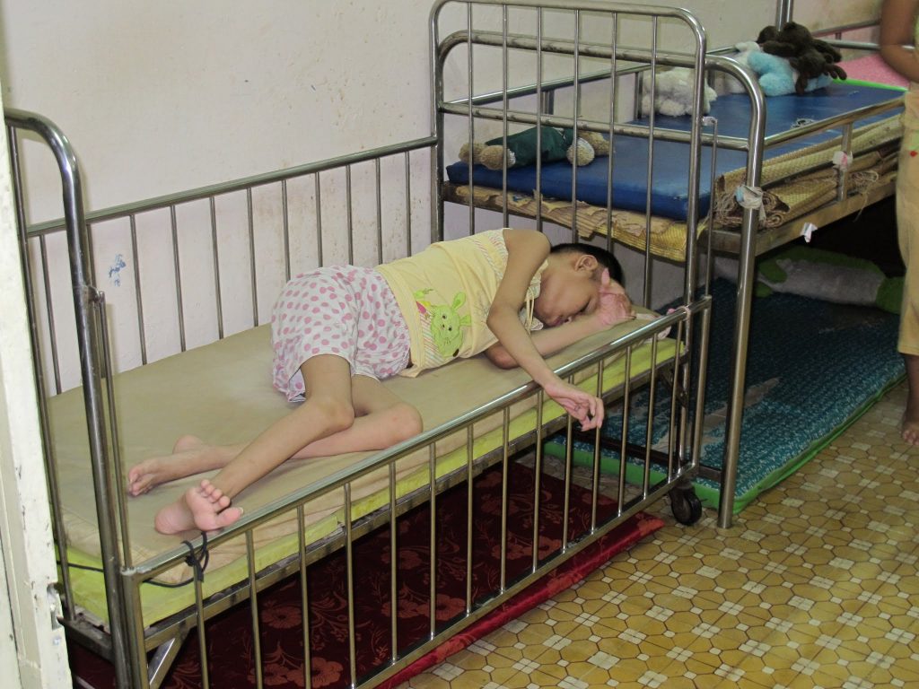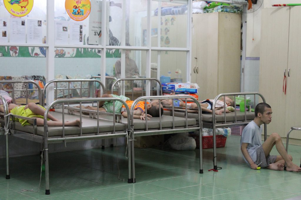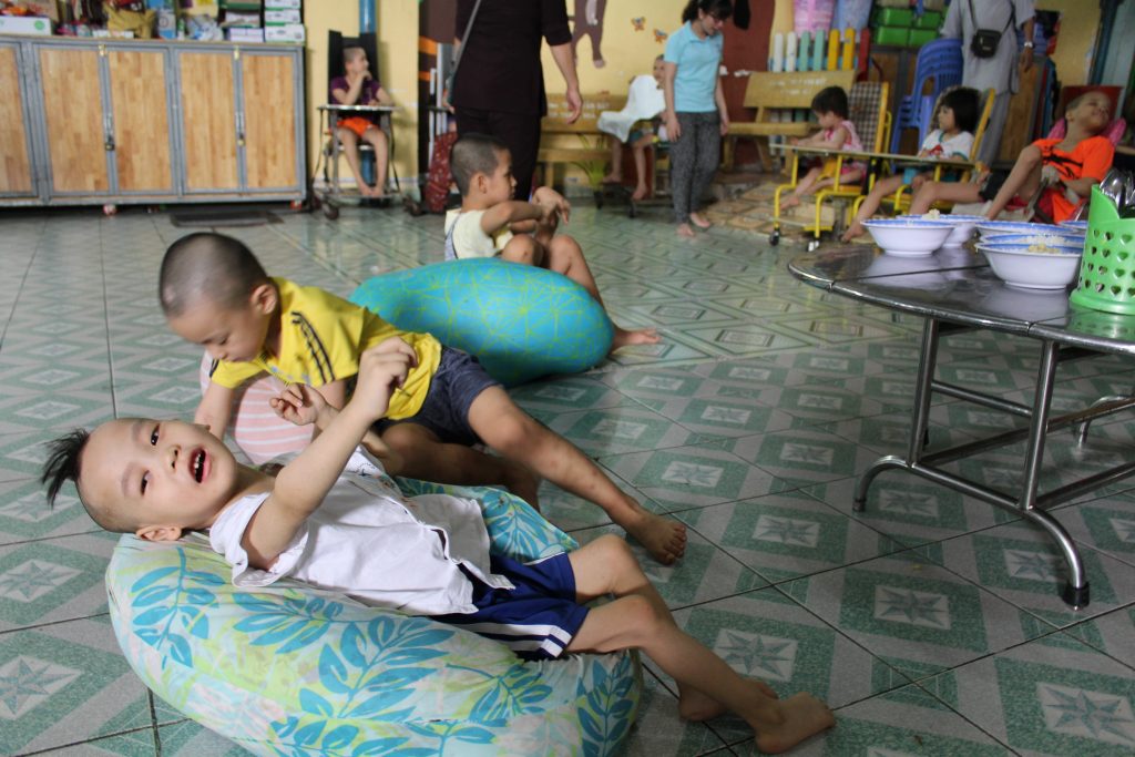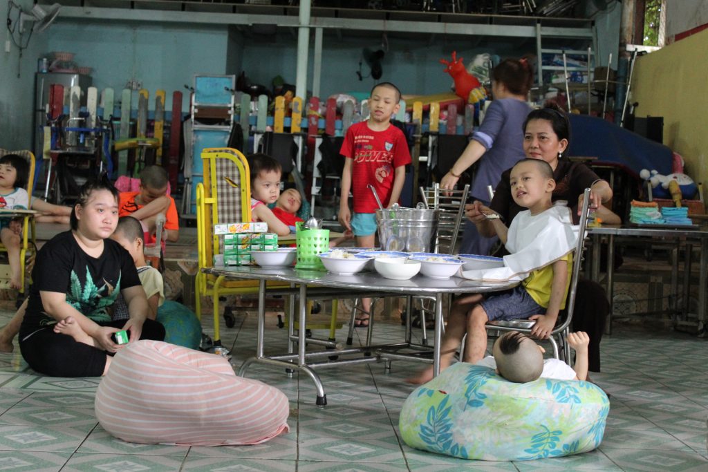 Après la crise sanitaire du COVID-19, les enfants lourdement handicapés du centre Kỳ Quang II ont été transférés vers Ky Quang II bis. Le centre accueille désormais des enfants atteints de handicaps sévères : hydrocéphalie, trisomie, malformations physiques, autisme, etc.