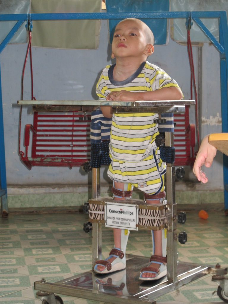 - financement partiel des séances de kinésithérapie, assurées 2 à 3 fois par semaine, apportant un réel soulagement aux enfants lourdement atteints.